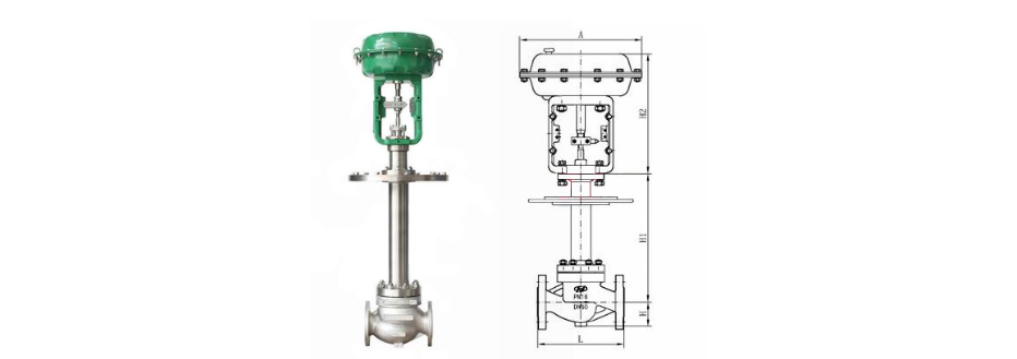 • 氣動薄膜低溫(wēn)調節閥適(shì)用於介質溫度-40℃~ -196℃(如(rú)液氧、液氮等)的低溫、深冷場合,主要由多彈簧氣(qì)動薄膜執行器與帶長頸接(jiē)管的閥體(tǐ)組成,采用長頸型上閥蓋的作用,使填料處於常溫下工作,並減少外界熱能傳入,為減少傳遞,長頸一般采用薄壁結(jié)構(gòu),具有良好的耐低溫性,特別用(yòng)於(yú)精確控低溫氣體、流體(如液氧、液(yè)氬等)的工藝(yì)參數保持在給定值。