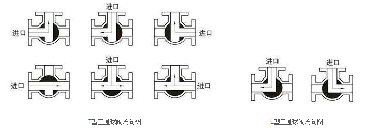 T型(xíng)三通球(qiú)閥可使三(sān)條正交的管道互相連通或切(qiē)換(huàn),起分流或合(hé)流作用(yòng);L型三通球閥可連接相互正交的兩管道,使(shǐ)另一(yī)條孔(kǒng)道切斷,起改變介質流向作用。