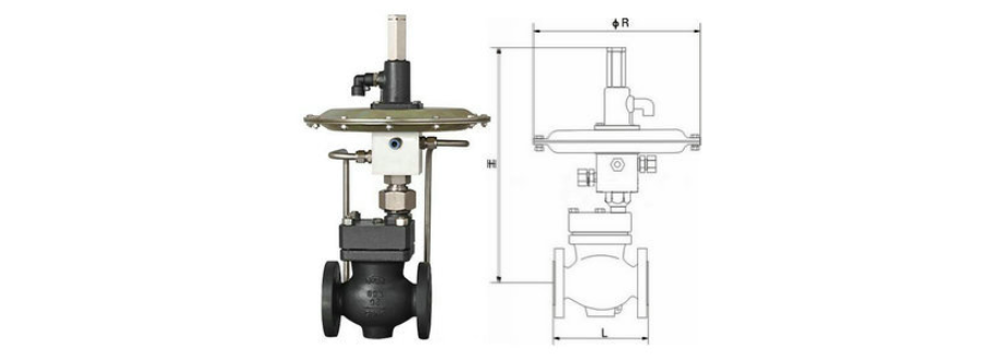 該閥采用大膜片執行機構(gòu)輸出力大穩定,對壓力流量微小變化極(jí)其敏感(gǎn),控製精度(dù)很高,閥芯采用單座流開(高進(jìn)低出)設計,在閥蓋處(和閥體連接處)安裝(zhuāng)有平衡膜片(起到閥(fá)前壓力平衡,消除不平衡(héng)力)閥後壓(yā)力經取壓管進入薄膜執行機構,同薄膜執行機構調節彈簧相比較,壓(yā)力達不到設定值(zhí)(調節壓(yā)縮執行機構彈簧)閥後壓(yā)力則變大,反之(zhī)則變小。