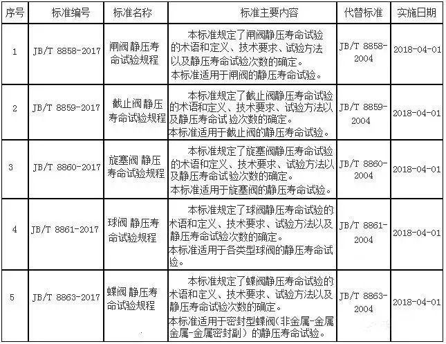 2017年12月4日(rì), 根據中華人民共和國工業和信息化部公告2017年 第48號,工業和(hé)信息化部批準發布了一批行業標準,其中由全國(guó)閥門標準化技術委員(yuán)會歸(guī)口的標準5項,現予以公布。2018年4月1日實施。