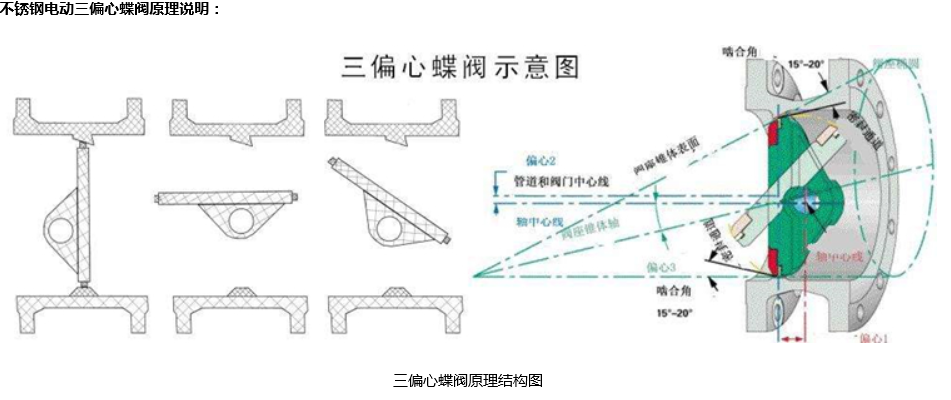 不鏽鋼(gāng)電動硬密封蝶閥屬於長壽命、節能型電動蝶閥,閥杆軸心同時偏離碟片中心及本體中心,且密封副(fù)為斜椎的蝶閥成為三偏心蝶閥,采用的是三維(wéi)偏(piān)心原理設計,使密封麵的空間運動軌跡達(dá)到理想化,密(mì)封麵相互之間無磨擦、無(wú)幹涉、加之(zhī)密(mì)封材料選擇得當,從(cóng)而使蝶閥的密封性(xìng)、耐(nài)腐(fǔ)蝕性、耐高溫性和耐磨性等得(dé)到了可靠(kào)的保證。其主要特(tè)點如下: