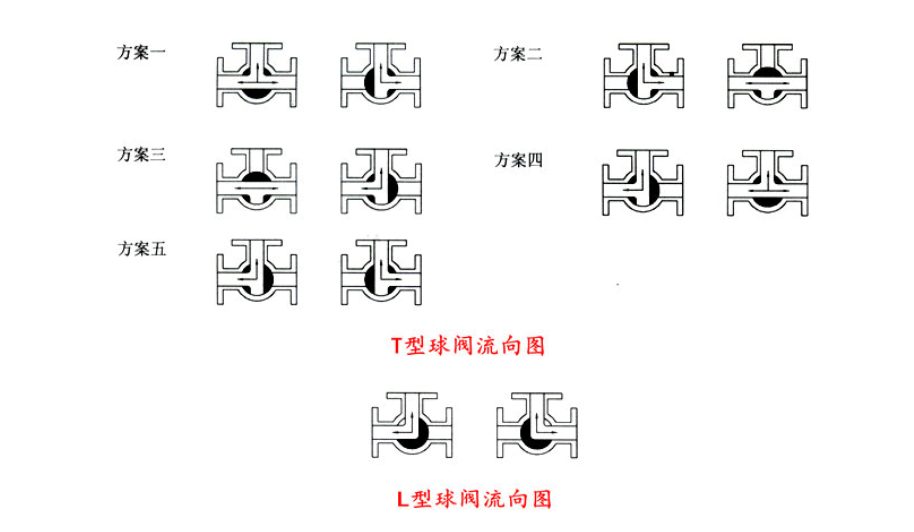 氣動(dòng)三通球閥常見的(de)連接方式有法蘭或者內螺紋,根據管道(dào)實際工況而選擇(zé)!那麽在使用過程中應當按照不同的工況,選擇不同的結(jié)構(gòu)形式,從在工藝上來說,T型球閥可以替代L型球閥,兩者工作原理圖如下: