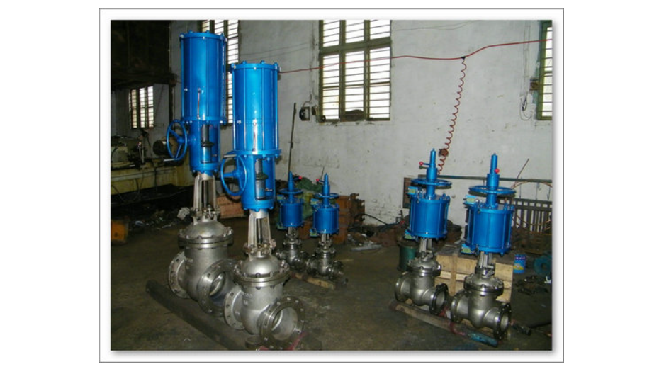 不鏽鋼氣(qì)動(dòng)(帶手動)法(fǎ)蘭閘閥圖片