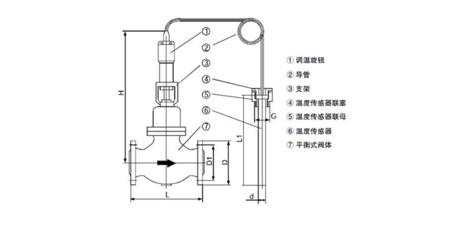 反之,當被控介質溫度(dù)低於設(shè)定值時(shí),感(gǎn)溫液體(tǐ)收縮,彈簧複位推動閥(fá)芯開啟,增加熱媒介(jiè)質流量,使被控介質溫度趨於升高。循(xún)環往複,從而使被控介質溫度(dù)始終保持在設定溫度值的允許範圍內。
