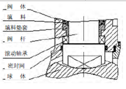 在輸送(sòng)礦漿用球閥、水煤漿工況用球閥等大口徑固定球閥,閥杆采用防塵(chén)和防噴出(chū)設計,在結構上確保閥杆隻承受(shòu)閥門啟閉力矩,介質的(de)推力由上、下支承軸承擔,使閥杆的受力情(qíng)況有了很好改善,保證閥杆能夠長時間可靠地工作,上下支承軸均設置有滾(gǔn)動軸承和滑動軸承,由此降低閥門的操作力矩。如圖1、圖2所示。小徑口浮動球閥,閥杆軸頸處設計滾動軸承與密(mì)封圈。如圖3所示。